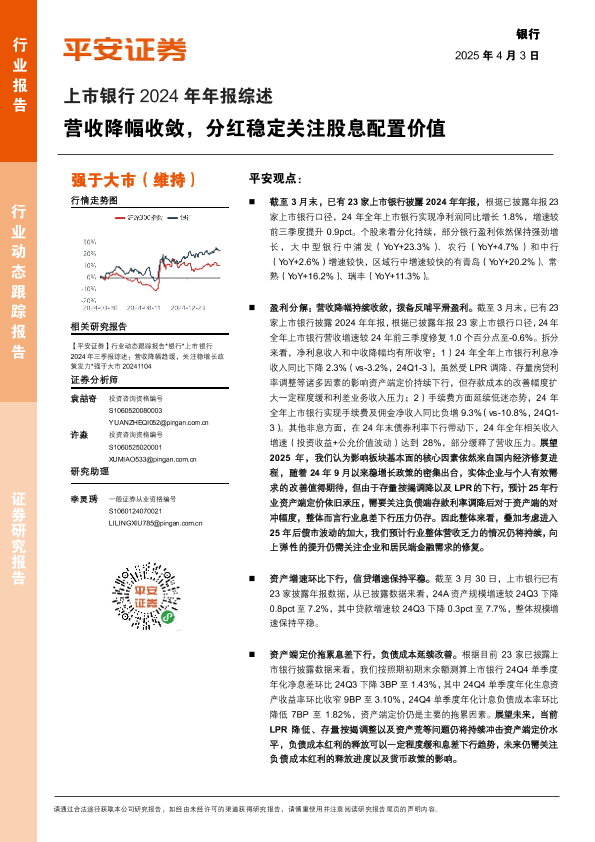 【平安证券】【20250403】上市银行业2024年年报综述:营收降幅收敛,分红稳定关注股息配置价值-19页