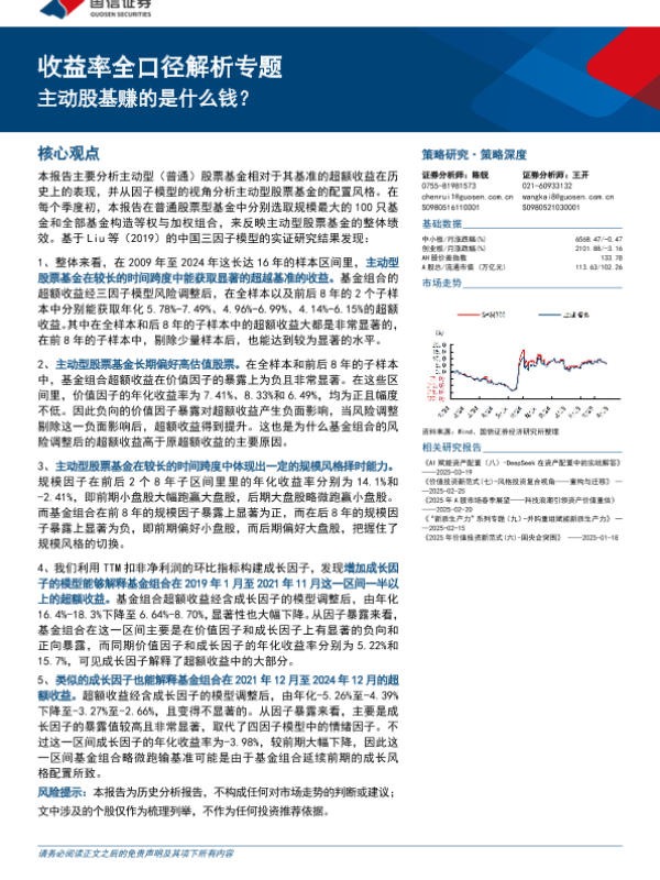主动股基 因子模型 市场表现 超额收益 风险调整