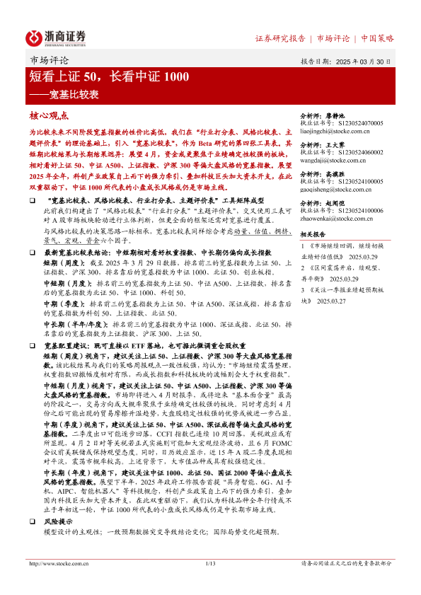 【浙商证券】【20250330】市场评论:短看上证50,长看中证1000——宽基比较表-13页