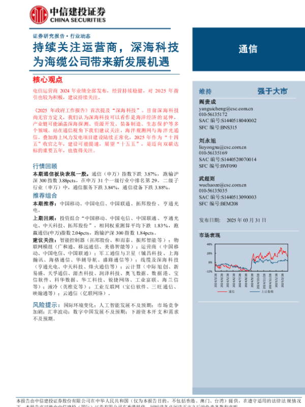 【中信建投证券】【20250331】通信行业动态:持续关注运营商,深海科技为海缆公司带来新发展机遇-10页
