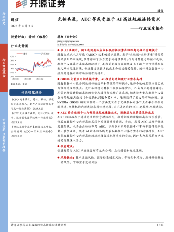 【开源证券】【20250403】通信行业深度报告:光铜共进,AEC等或受益于AI高速短距连接需求-32页