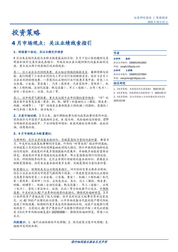 【国盛证券】【20250331】4月市场观点:关注业绩线索指引-10页