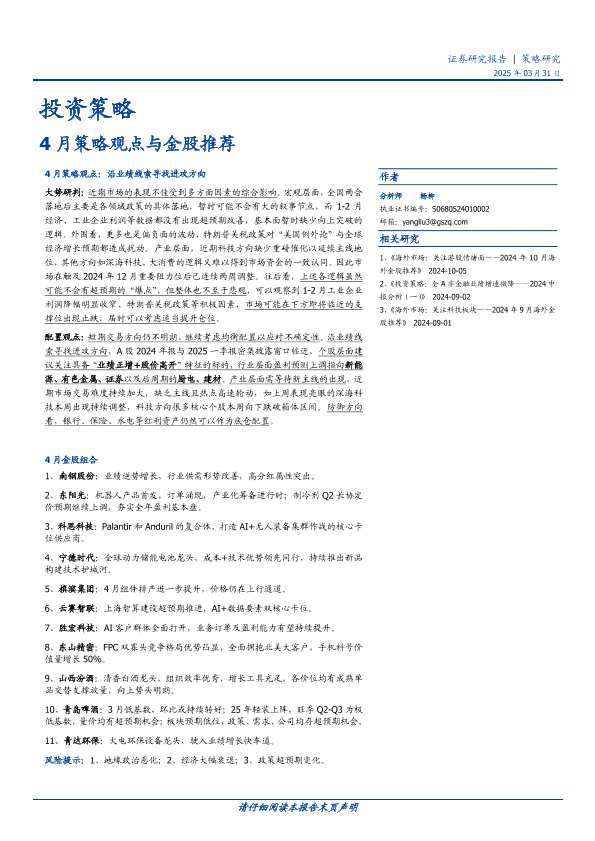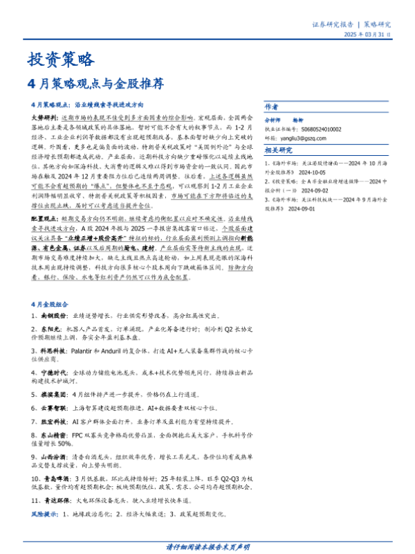 【国盛证券】【20250331】4月策略观点与金股推荐-15页
