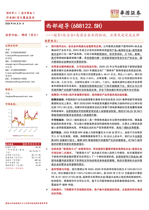 【华源证券】【20250401】西部超导超导+钛合金+高温合金共同驱动,业绩或迎筑底反弹-25页