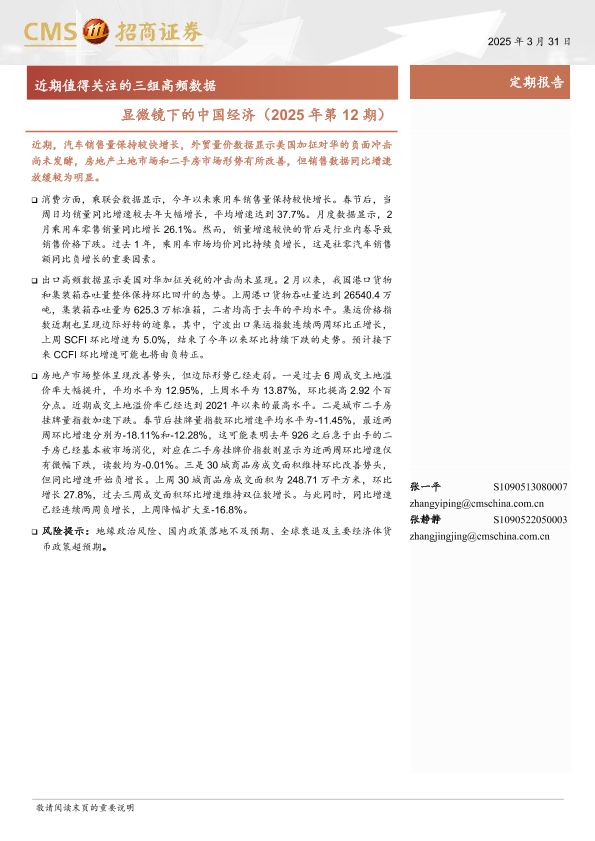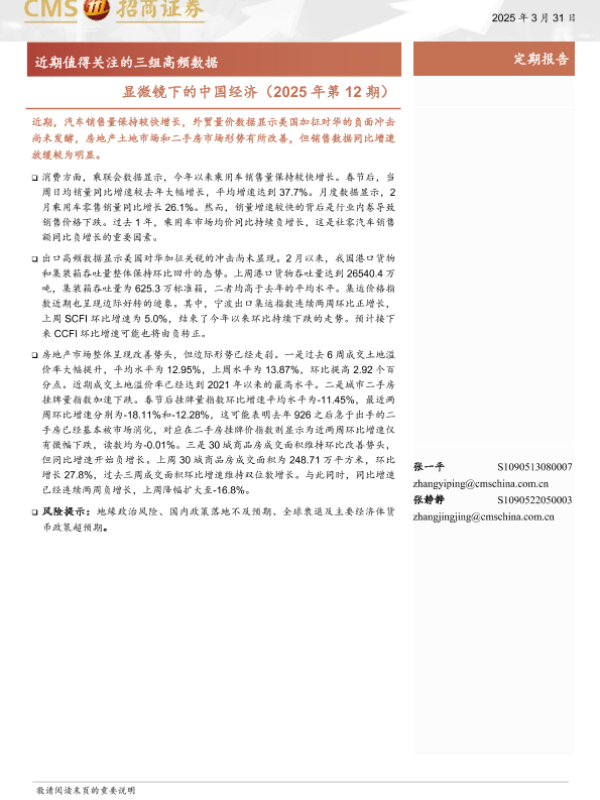 中国经济 乘用车销售 出口数据 房地产市场 高频数据