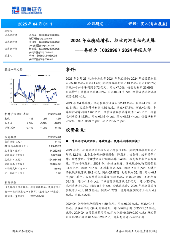 【国海证券】【20250401】易普力2024年报点评:2024年业绩稳增长,拟收购河南松光民爆-10页