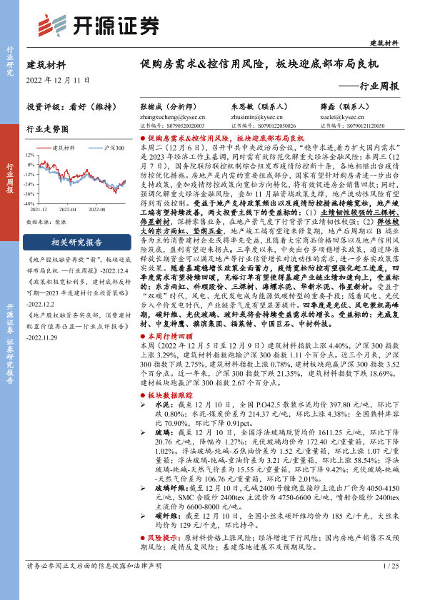 【开源证券】【20221211】建筑材料行业周报:促购房需求&控信用风险,板块迎底部布局良机-25页