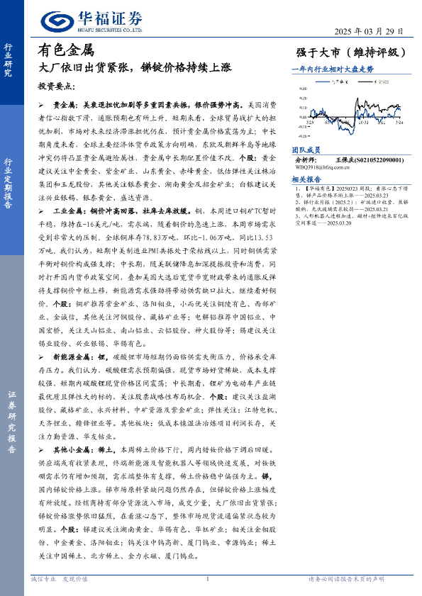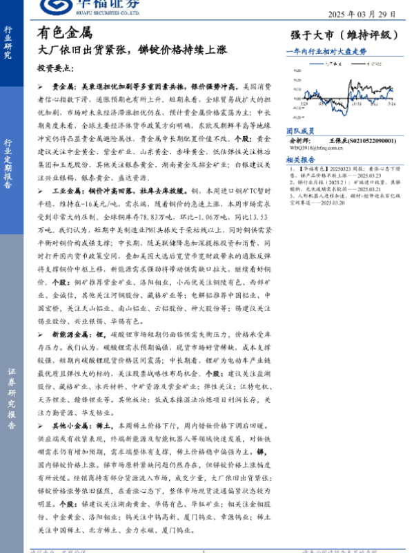 【华福证券】【20250329】有色金属行业定期报告:大厂依旧出货紧张,锑锭价格持续上涨-16页