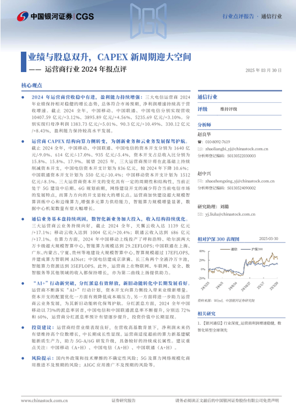 【银河证券】【20250330】运营商行业2024年报点评-13页
