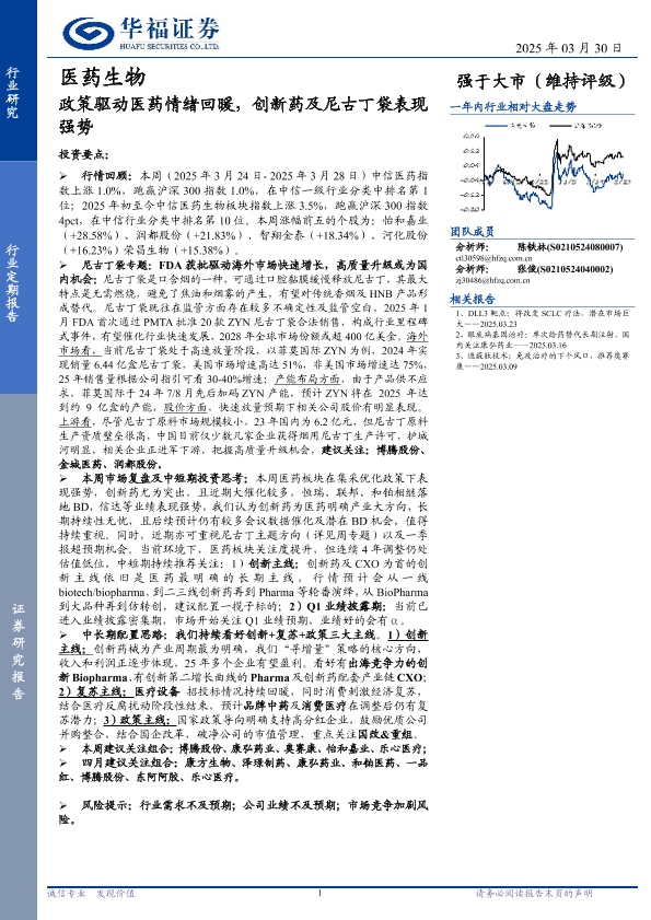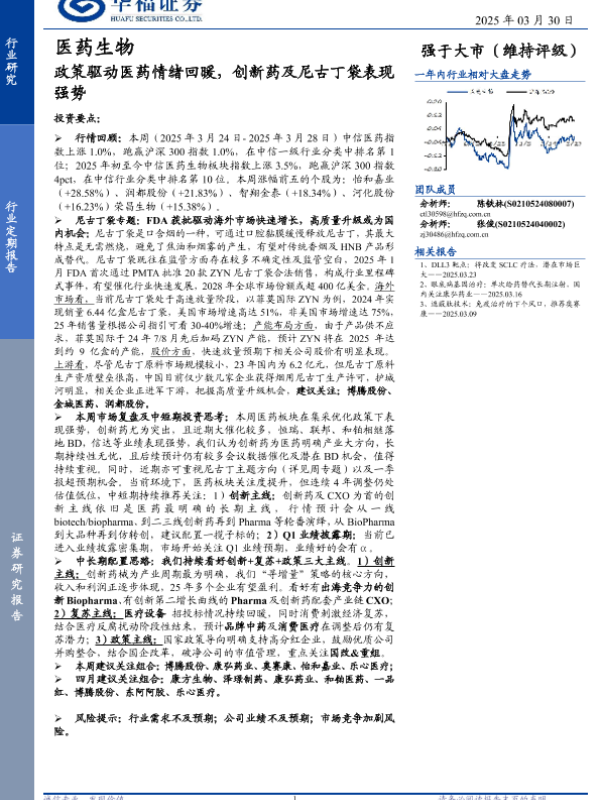 【华福证券】【20250330】医药生物行业:政策驱动医药情绪回暖,创新药及尼古丁袋表现强势-14页