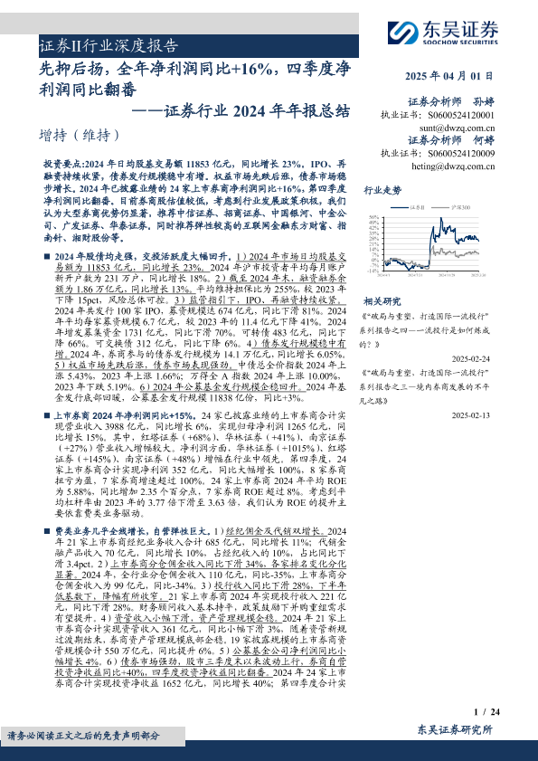 【东吴证券】【20250401】证券Ⅱ行业深度报告:证券行业2024年年报总结-24页