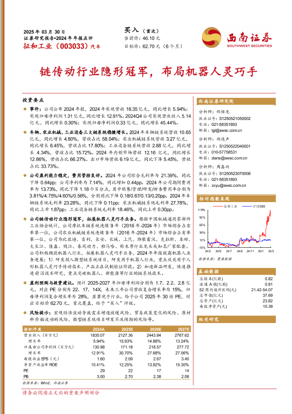 【西南证券】【20240330】征和工业(003033)2024年年报点评-13页