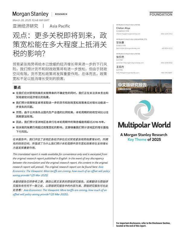 【Morgan Stanley】【20250325】Morgan Stanley Fixed-亚洲经济研究 观点:更多关税即将到来,政策宽松能在多大程度上抵消关税的影响?-21页