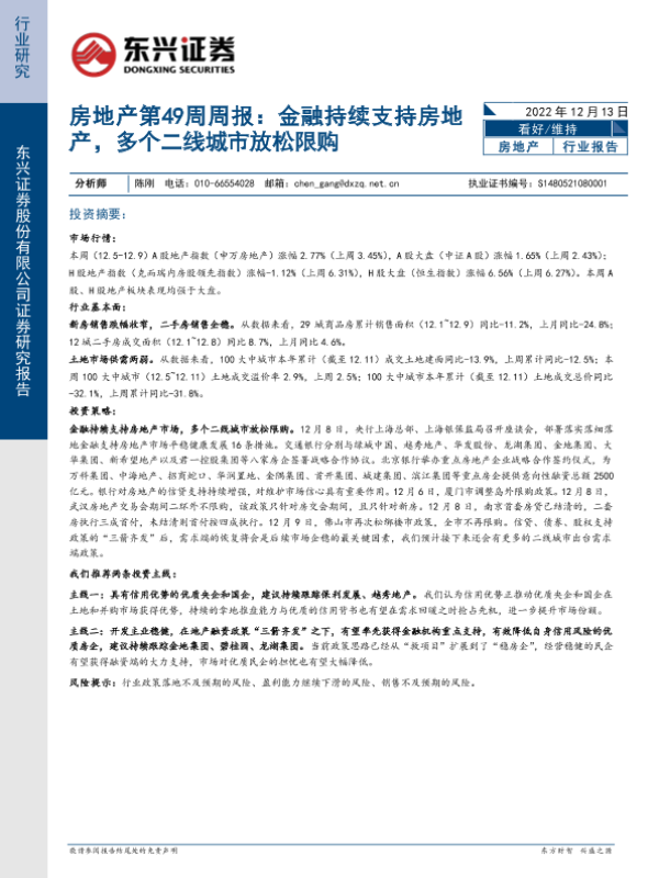 【东兴证券】【20221213】房地产第49周周报:金融持续支持房地产,多个二线城市放松限购-21页
