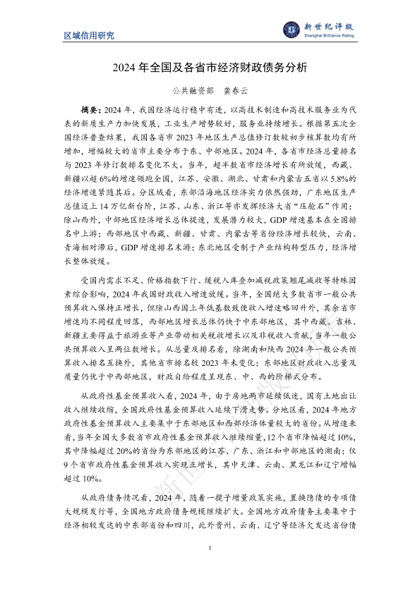 【公共融资部 龚春云】【2024】2024年全国及各省市经济财政债务分析-15页