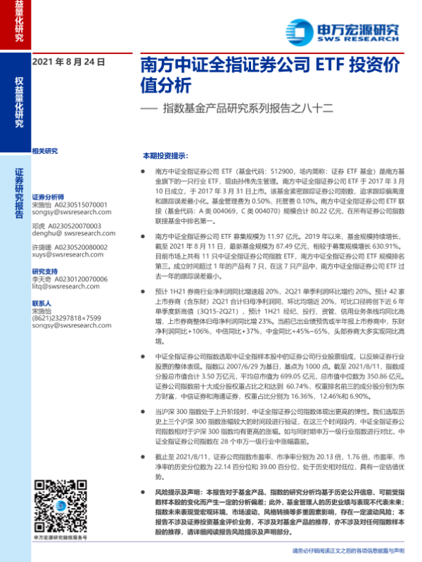 【申万宏源】【20210824】指数基金产品研究系列报告之八十二:南方中证全指证券公司ETF投资价值分析-22页