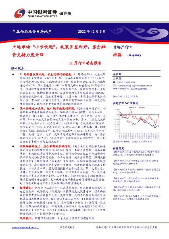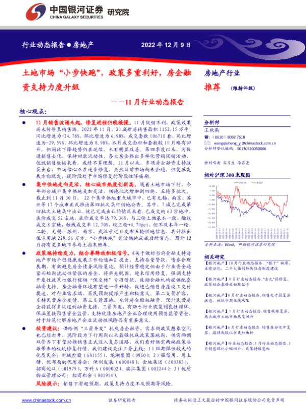 【银河证券】【20221209】房地产行业11月行业动态报告:土地市场“小步快跑”,政策多重利好,房企融资支持力度升级-27页
