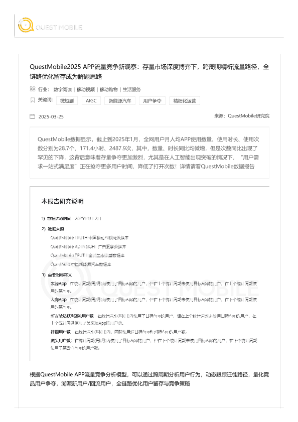 【QuestMobile研究院】【202503】2025+APP流量竞争新观察:存量市场深度博弈下,跨周期精析流量路径,全链路优化留存成为解题思路-14页
