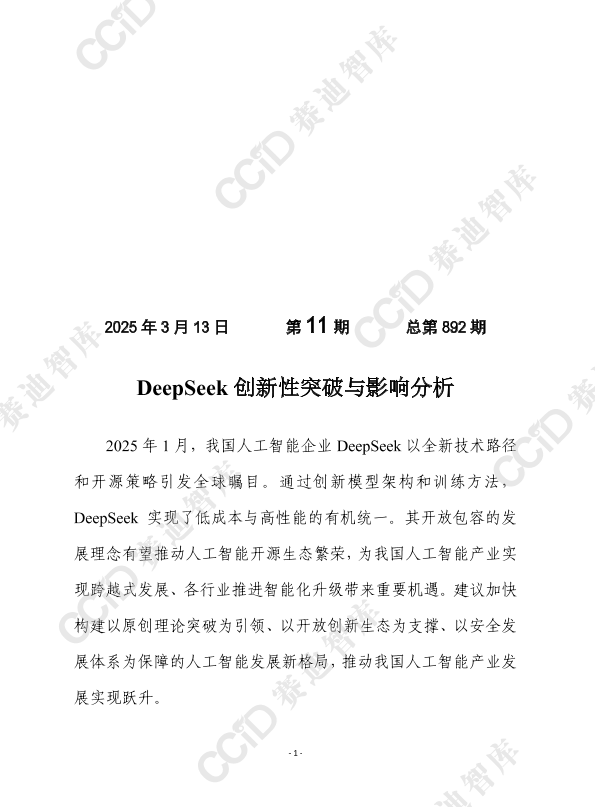 【赛迪前瞻】【20250313】DeepSeek创新性突破与影响分析-11页