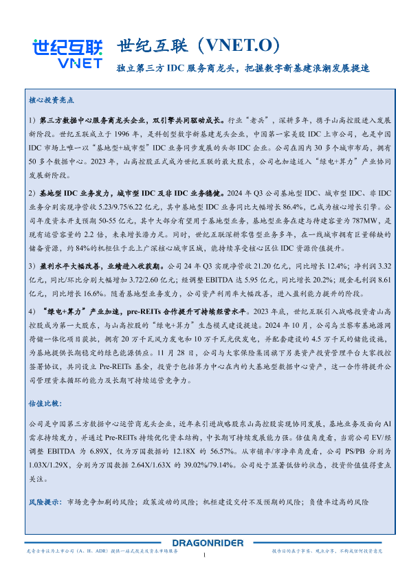 【龙奇士】【2024】市场前景及投资研究报告-第三方IDC服务商龙头,数字新基建浪潮发展-29页