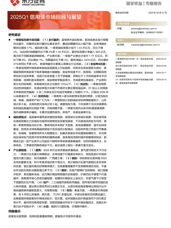 【东方证券】【20250407】2025Q1信用债市场回顾与展望-29页