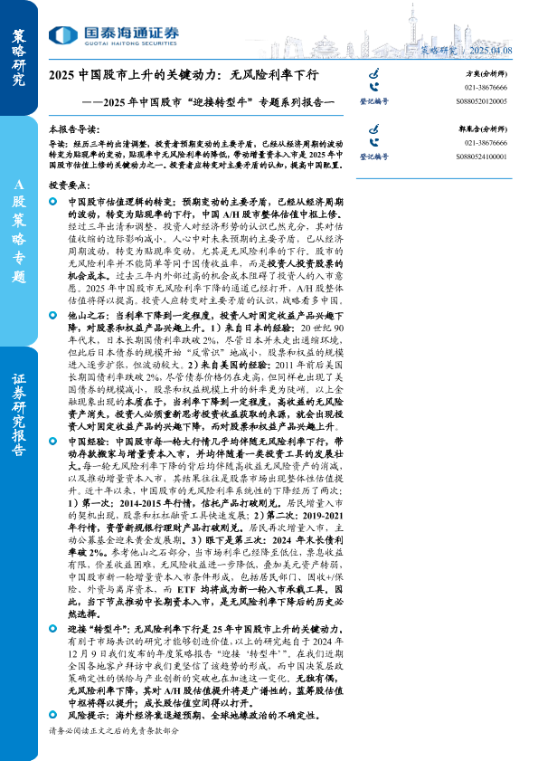 【国泰海通证券】【20250408】2025中国股市上升的关键动力:无风险利率下行-23页