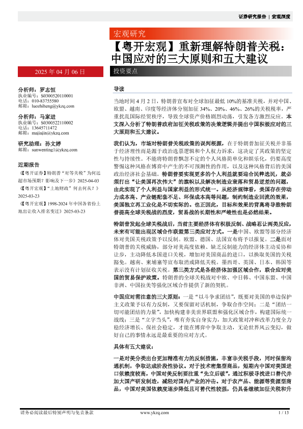 【粤开证券】【20250406】重新理解特朗普关税:中国应对的三大原则和五大建议-13页