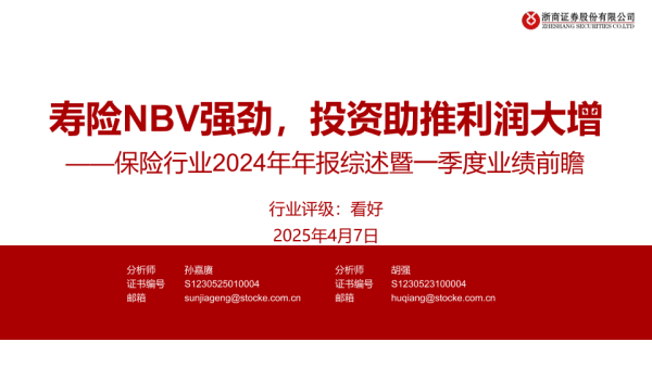 【浙商证券】【20250407】保险行业2024年年报综述暨一季度业绩前瞻-24页