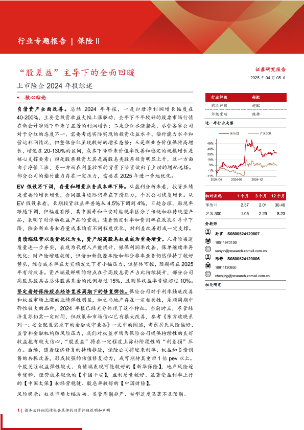 【西部证券】【20250405】保险行业上市险企2024年报综述:“股差益”主导下的全面回暖-24页
