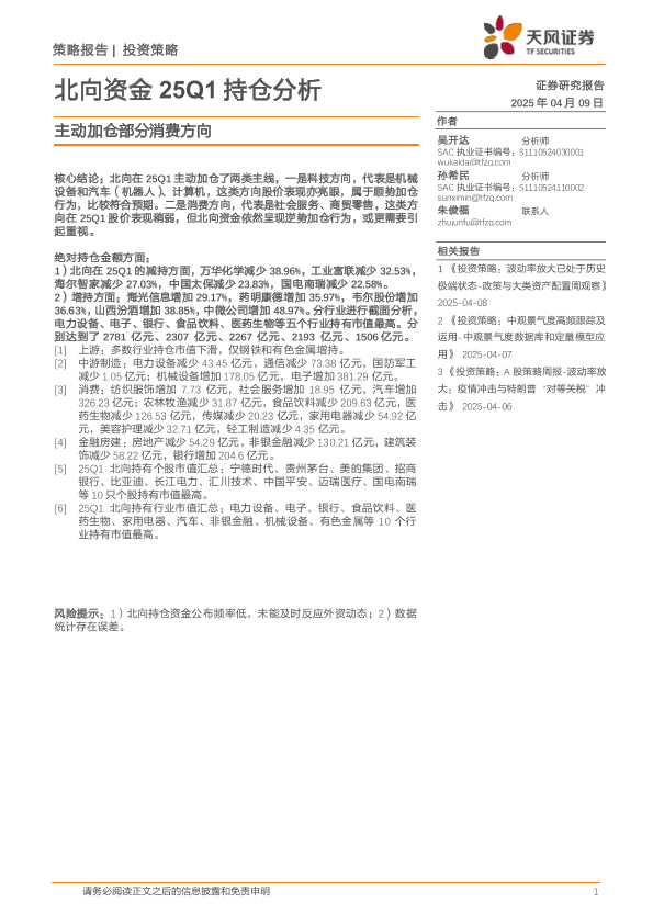 【天风证券】【20250409】北向资金25Q1持仓分析:主动加仓部分消费方向-14页