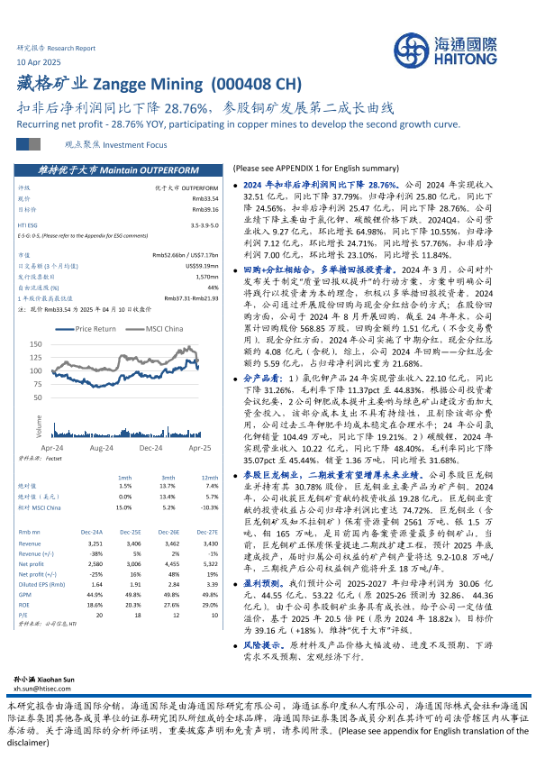 【海通国际】【20250410】藏格矿业(000408)扣非后净利润同比下降28.76%,参股铜矿发展第二成长曲线-12页