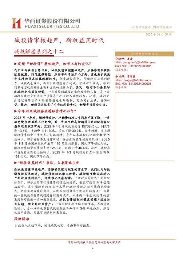 【华西证券】【20250409】城投解惑系列之十二:城投债审核趋严,新收益荒时代-14页