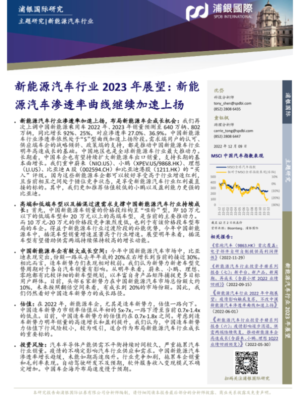 【浦银国际】【20221209】新能源汽车行业2023年展望:新能源汽车渗透率曲线继续加速上扬-29页