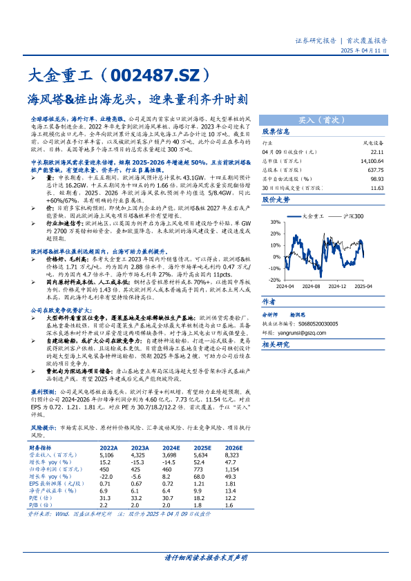 【国盛证券】【20250411】大金重工(002487)海风塔&桩出海龙头,迎来量利齐升时刻-26页