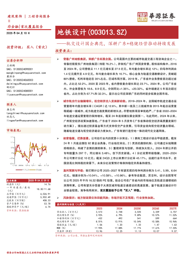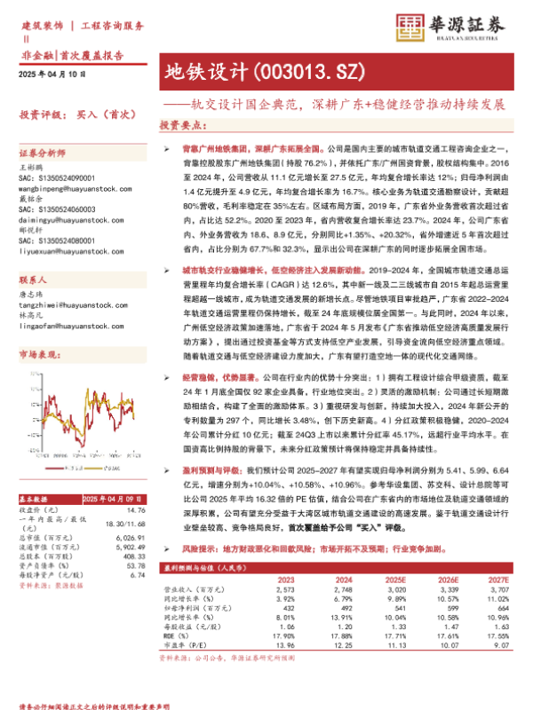 【华源证券】【20250410】地铁设计(003013)轨交设计国企典范,深耕广东+稳健经营推动持续发展-29页