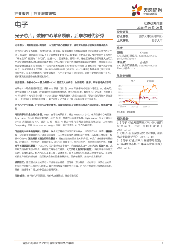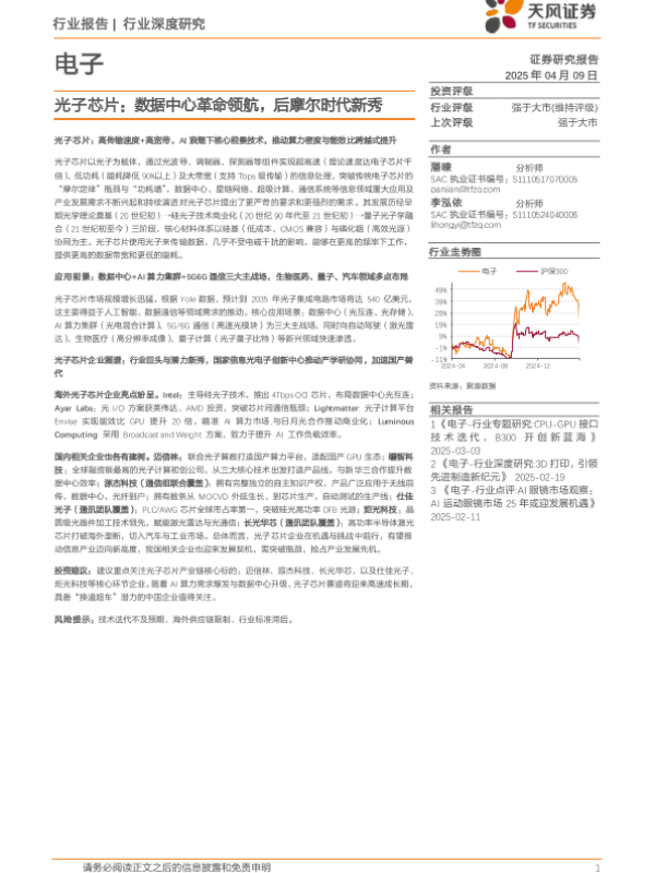 【天风证券】【20250409】电子行业深度研究:光子芯片,数据中心革命领航,后摩尔时代新秀-69页