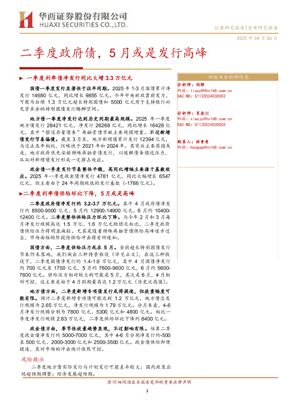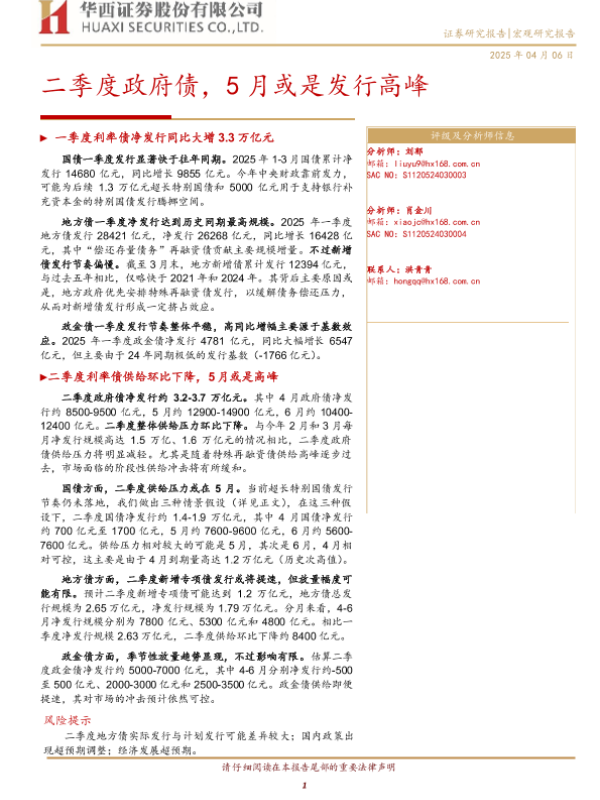 【华西证券】【20250406】二季度政府债,5月或是发行高峰-14页