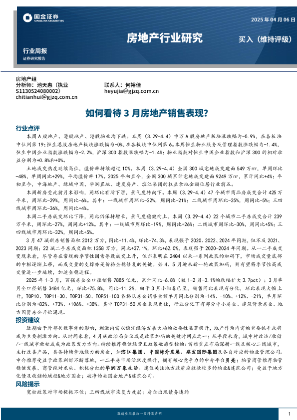 【国金证券】【20250406】房地产行业研究:如何看待3月房地产销售表现?-20页
