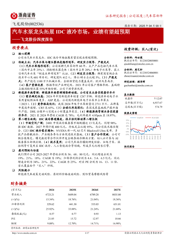 【浙商证券】【20250409】飞龙股份(002536)深度报告:汽车水泵龙头拓展IDC液冷市场,业绩有望超预期-17页