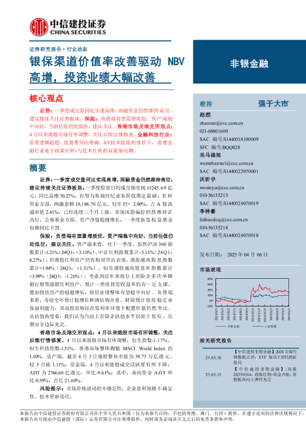 【中信建投证券】【20250406】非银金融行业动态:银保渠道价值率改善驱动NBV高增,投资业绩大幅改善-25页