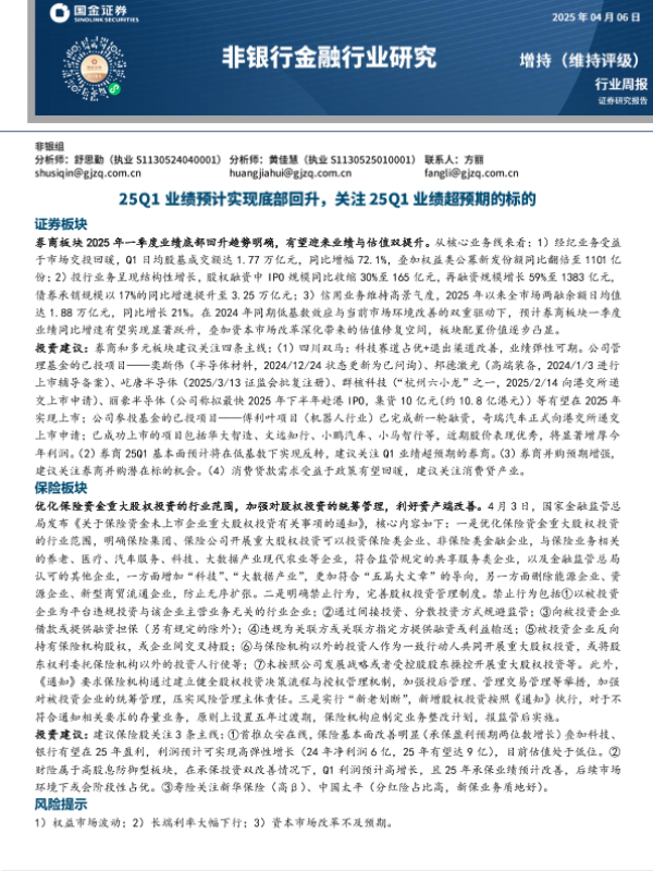 【国金证券】【20250406】非银行金融行业研究:25Q1业绩预计实现底部回升,关注25Q1业绩超预期的标的-10页