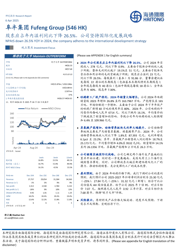 【海通国际】【20250406】阜丰集团股东应占年内溢利同比下降26.5%,公司坚持国际化发展战略-12页