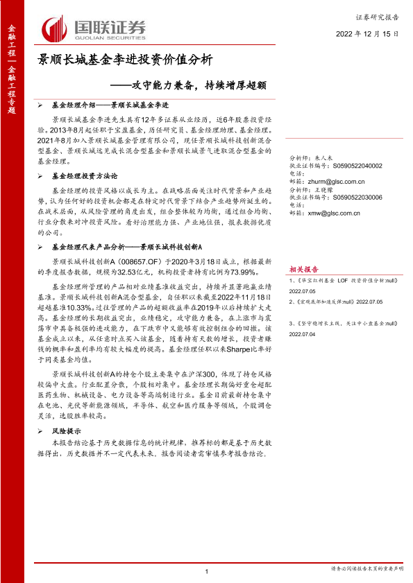 【国联证券】【20221215】景顺长城基金李进投资价值分析:攻守能力兼备,持续增厚超额-20页