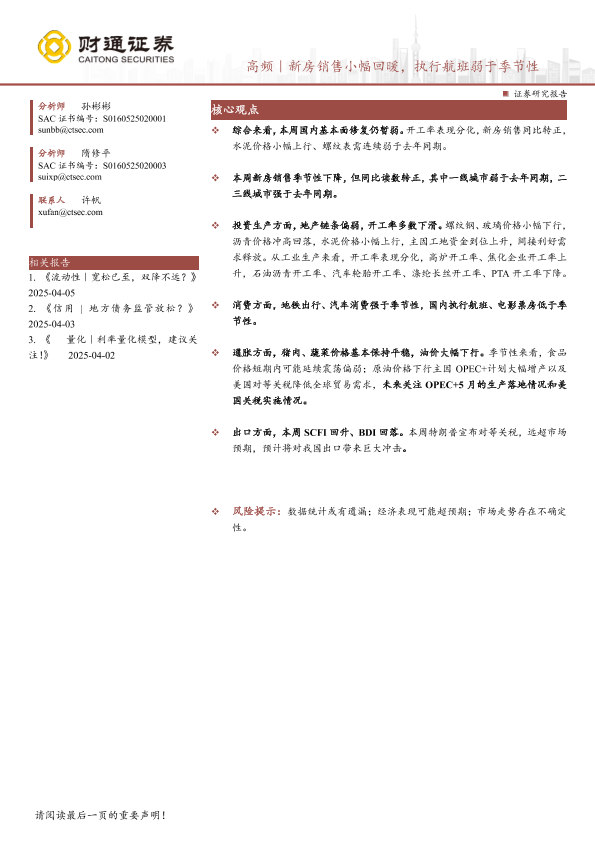【财通证券】【20250406】高频|新房销售小幅回暖,执行航班弱于季节性-13页
