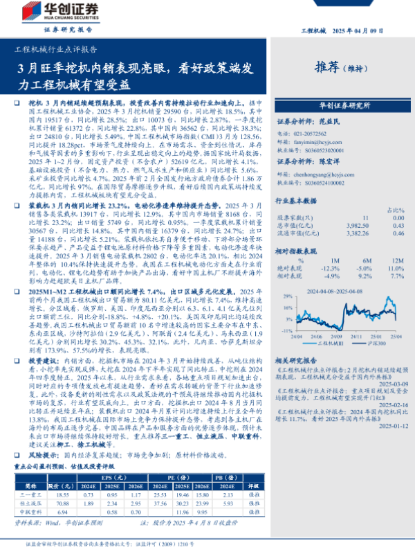 【华创证券】【20250409】工程机械行业点评报告:3月旺季挖机内销表现亮眼,看好政策端发力工程机械有望受益-15页