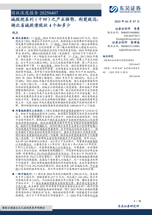 【东吴证券】【20250407】城投挖系列(十四)之产业强鄂,荆楚致远:湖北省城投债现状4个知多少-31页