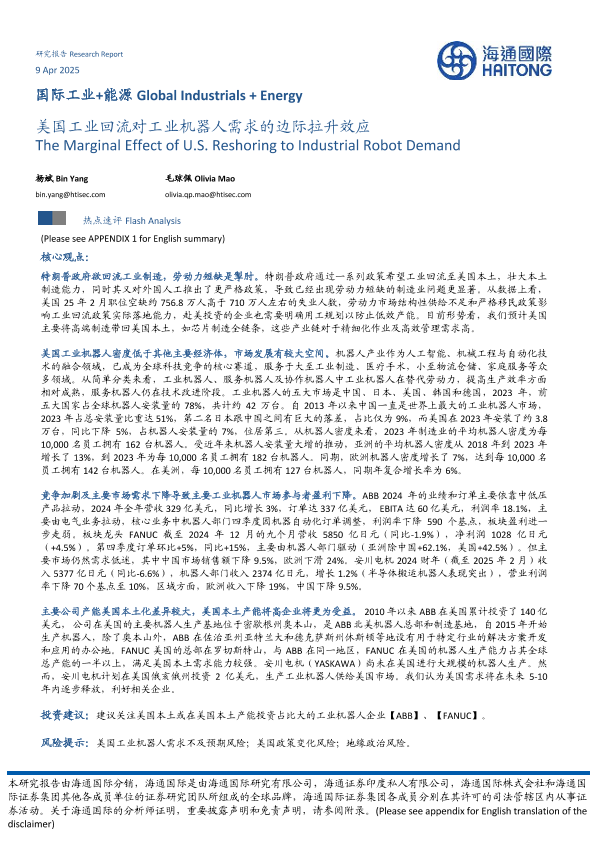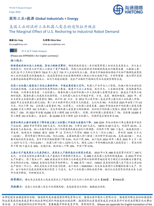 【海通国际】【20250409】美国工业回流对工业机器人需求的边际拉升效应-10页