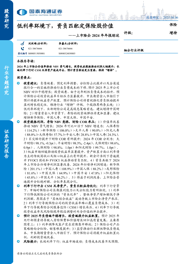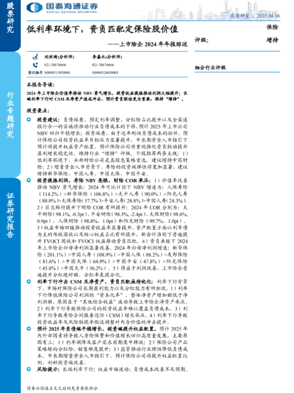 【国泰海通证券】【20250406】保险行业上市险企2024年年报综述:低利率环境下,资负匹配定保险股价值-25页