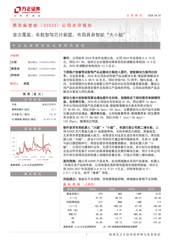 【方正证券】【20250407】黑芝麻智能公司点评报告:首次覆盖,车载智驾芯片新星,布局具身智能“大小脑”-10页