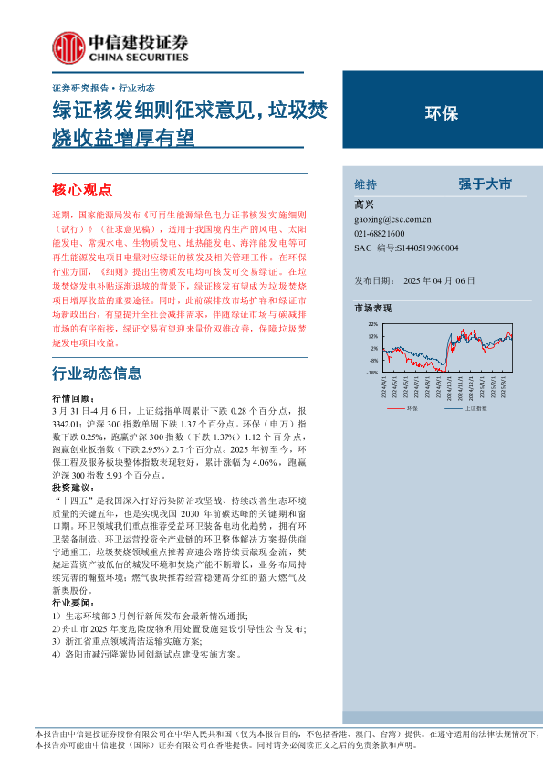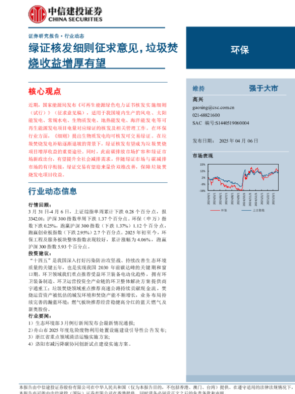 【中信建投证券】【20250406】环保行业动态:绿证核发细则征求意见,垃圾焚烧收益增厚有望-12页
